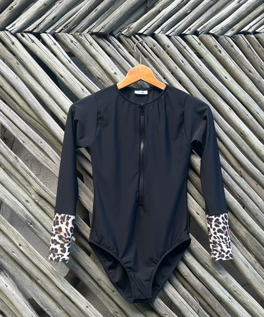 Noir - Manches léopard